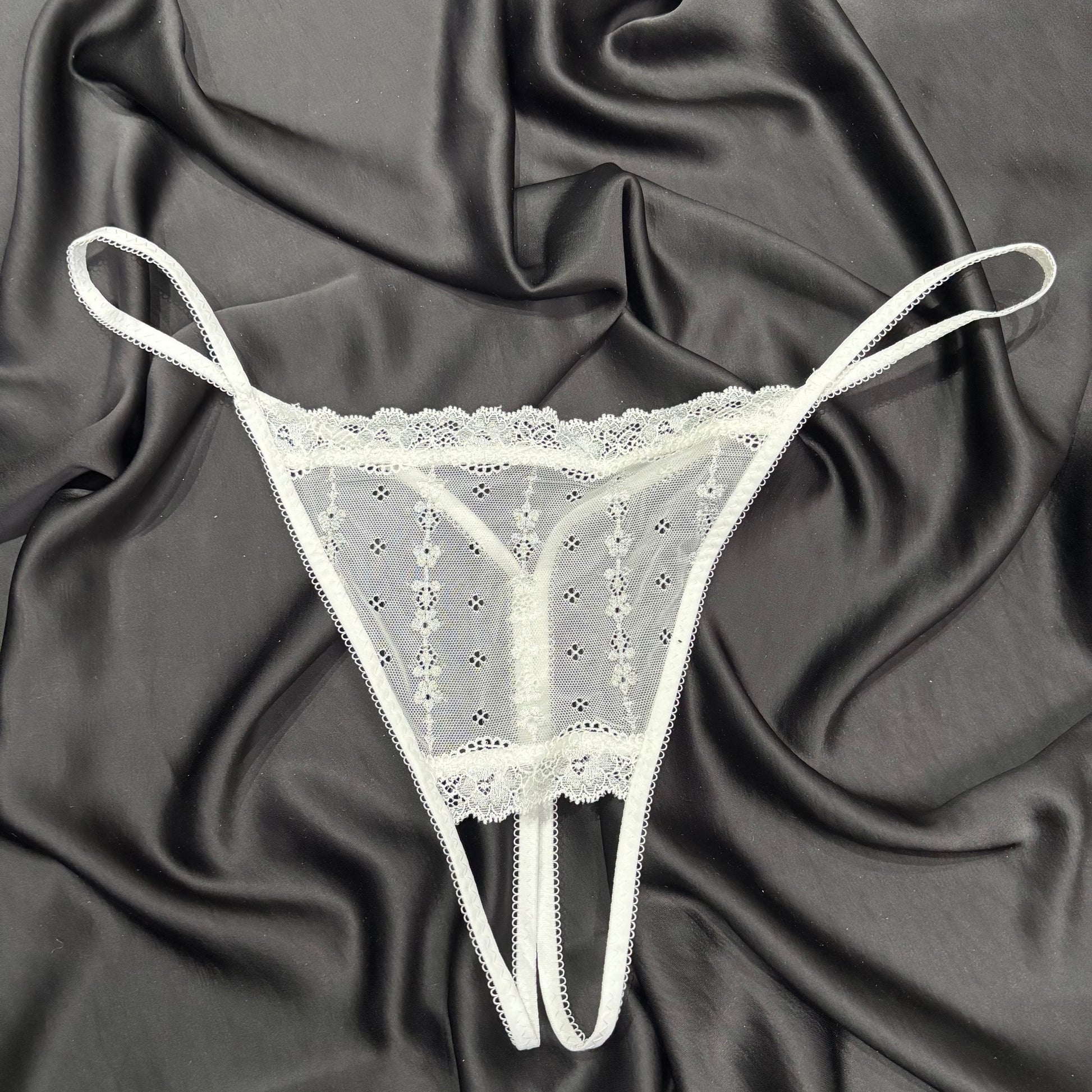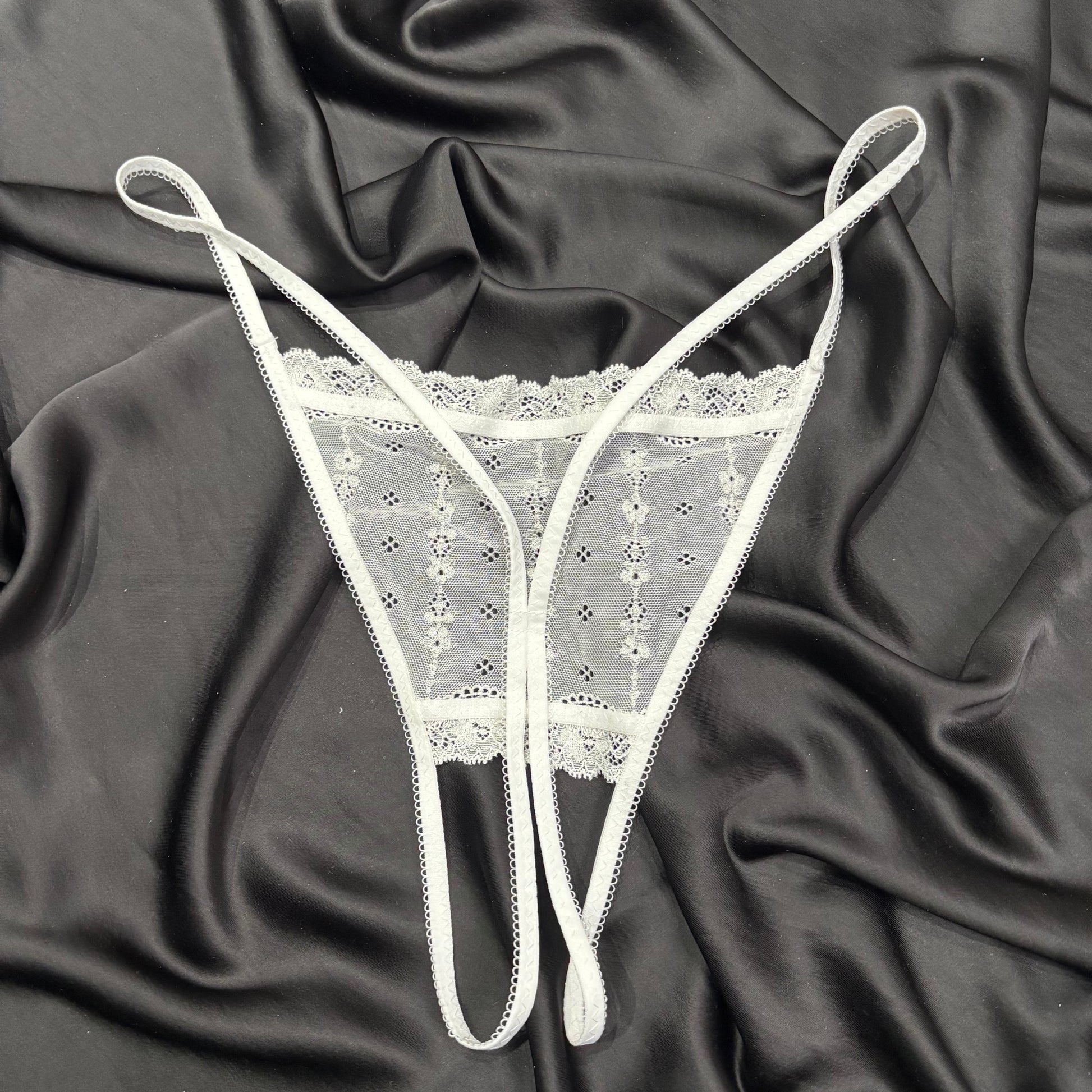Hitch #9 is a stretch lace ouvert strappy thong. Fits size 12 best.