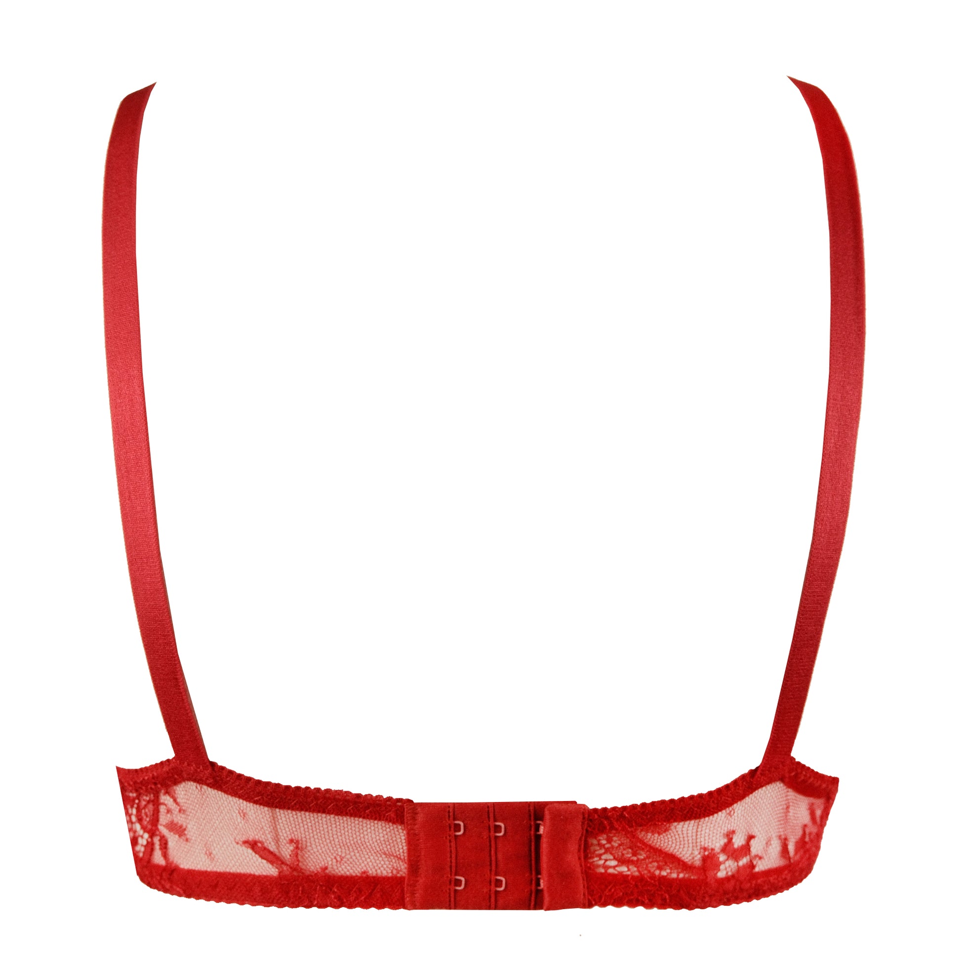 - 3 row hook and eye fastening and fully adjustable red satin elastic straps
